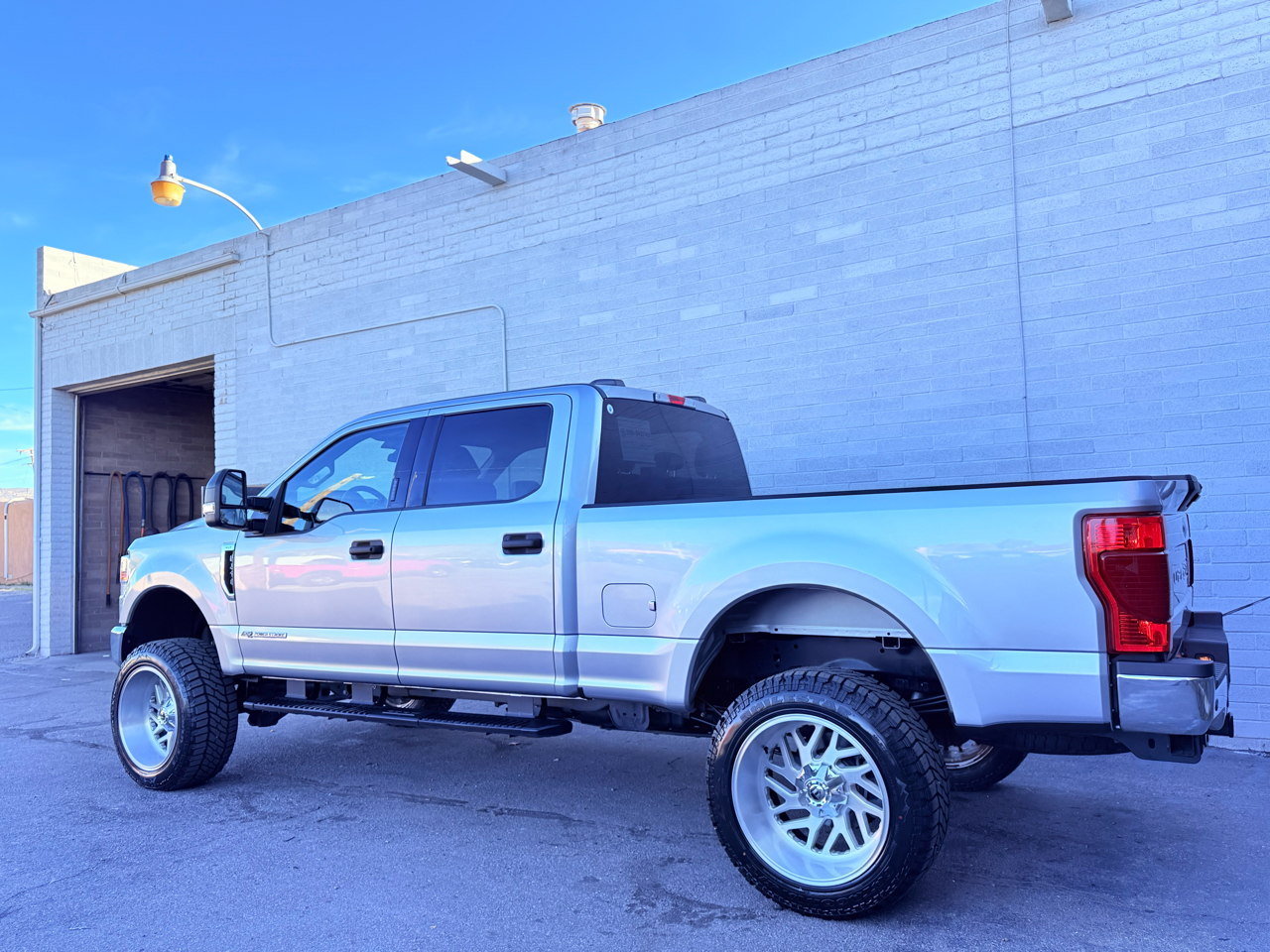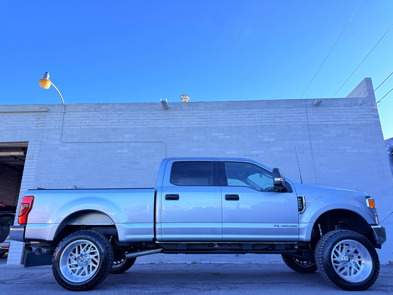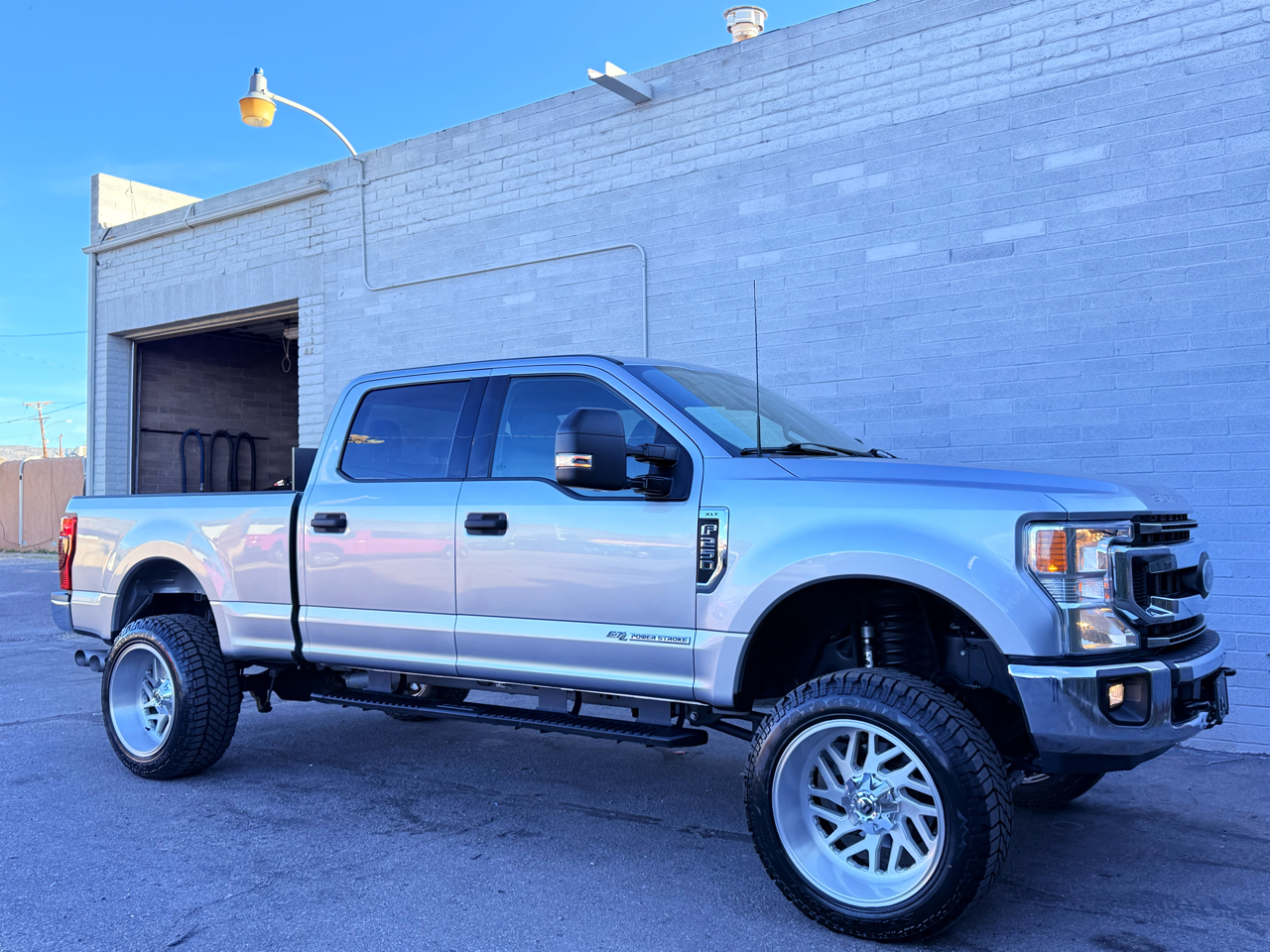 2022 Ford F-250 XLT SuperCrew 4x4 - 6.7L Power Stroke Diesel, Lifted with Custom Polished Aluminum Wheels The 2022 Ford F-250 Super Duty XLT blends rugged strength with modern capability. Under the hood, it's powered by the 6.7L Power Stroke turbo diesel V8 producing 475 horsepower and 1,050 lb-ft of torque, paired with Ford's TorqShift transmission for proven durability. This SuperCrew 4x4 is built to handle demanding jobs with a towing capacity of up to 20,000 lbs and a payload rating around 3,800 lbs, making it an ideal choice for heavy-duty hauling. This example stands out with a professionally installed lift kit, custom polished aluminum wheels, and oversized aggressive rough-terrain tires, giving it a commanding stance and off-road capability. Inside, the XLT trim offers comfort and modern tech features, balancing practicality with everyday usability. Available now at E&B Auto Sales, 11100 Central Ave SE, Albuquerque, NM 87123. Call 505-267-6471 to learn more or schedule a test drive. Financing available - trade-ins welcome - all credit types considered!We offer financing though many of our local Credit Unions and Finance Companies
