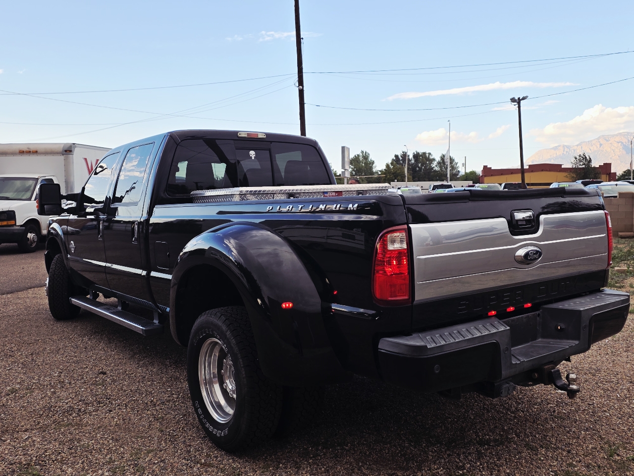 2016 Ford F-350 Platinum Dually Crew Cab 4x4 - 6.7L Power Stroke Diesel, Fully Optioned with Gooseneck Hitch & Auxiliary Fuel Tank The 2016 Ford F-350 Platinum delivers the perfect blend of luxury, strength, and serious work capability. Powered by the 6.7L Power Stroke turbo diesel V8 producing 440 horsepower and 860 lb-ft of torque, this dual rear wheel 4WD Crew Cab is engineered for heavy towing with a capacity of up to 31,000 lbs and a payload rating over 6,000 lbs. The Platinum trim features premium leather seating, advanced infotainment, and every comfort option Ford offered in 2016, making it both capable and refined. This truck is also equipped with a bed-mounted Champion gooseneck hitch and an auxiliary fuel tank, enhancing its long-haul and towing utility. Clean, powerful, and fully optioned, this F-350 Platinum is ready for both work and travel. Available now at E&B Auto Sales, 11100 Central Ave SE, Albuquerque, NM 87123. Call 505-267-6471 to learn more or schedule a test drive. Financing available - trade-ins welcome - all credit types considered!We offer financing though many of our local Credit Unions and Finance Companies