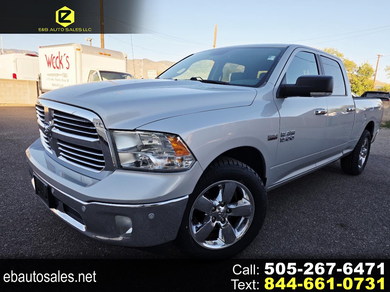 2018 Ram 1500 SLT Crew Cab 2WD - 5.7L HEMI V8, 6-Seater The 2018 Ram 1500 SLT combines proven V8 power with everyday comfort and versatility. Powered by the 5.7L HEMI V8 engine producing 395 horsepower and 410 lb-ft of torque, this Crew Cab 2WD delivers smooth, confident performance both on the highway and around town. With a towing capacity of up to 10,450 lbs and a payload rating around 1,700 lbs, it's capable enough for work while offering excellent drivability. The spacious 6-passenger cabin provides plenty of room for family or crew, while the SLT trim adds premium interior materials, touchscreen infotainment with Bluetooth, and modern convenience features. Stylish, reliable, and efficient, this Ram 1500 SLT is a perfect blend of practicality and performance. Available now at E&B Auto Sales, 11100 Central Ave SE, Albuquerque, NM 87123. Call 505-267-6471 to learn more or schedule a test drive. Financing available - trade-ins welcome - all credit types considered!