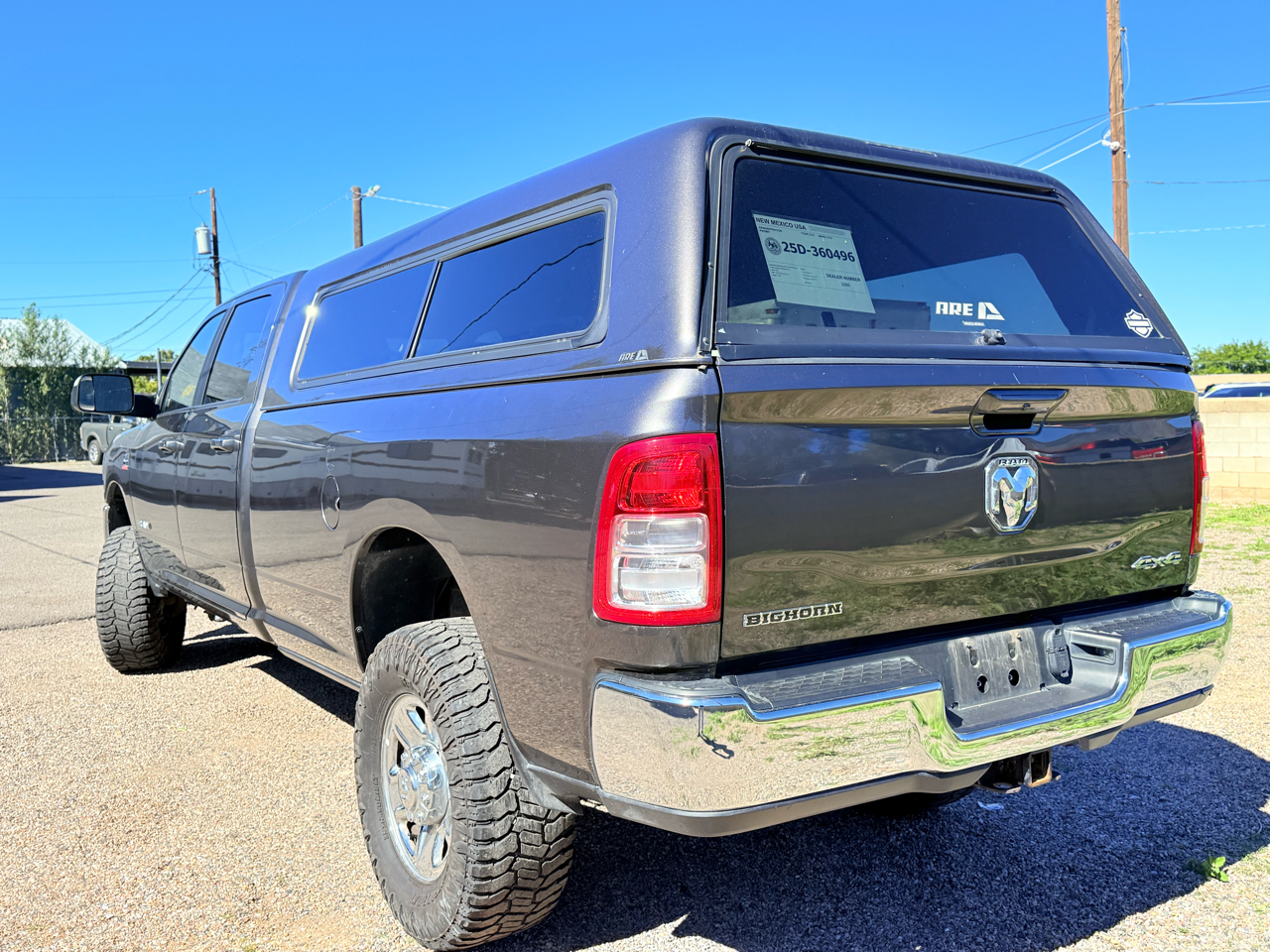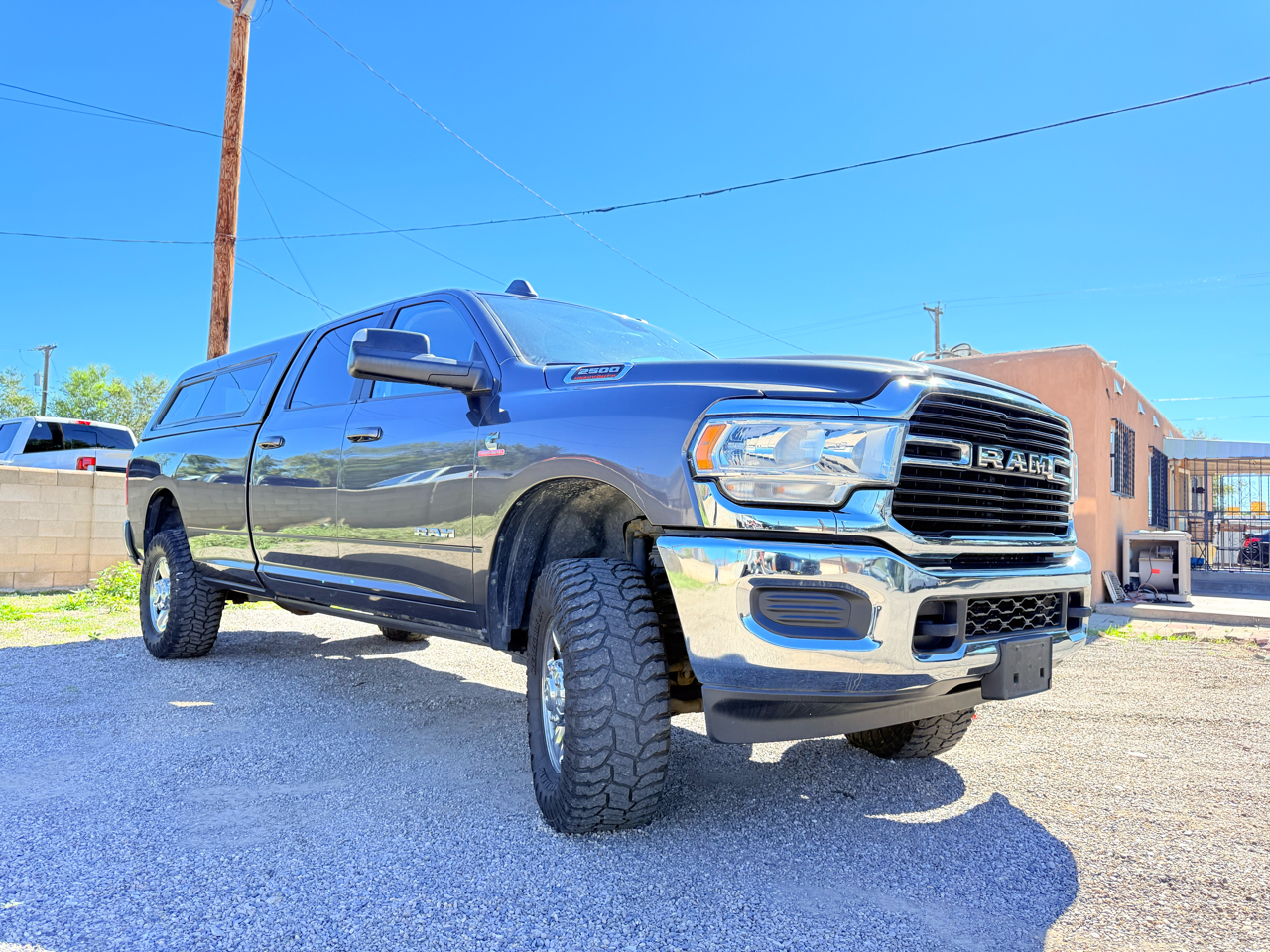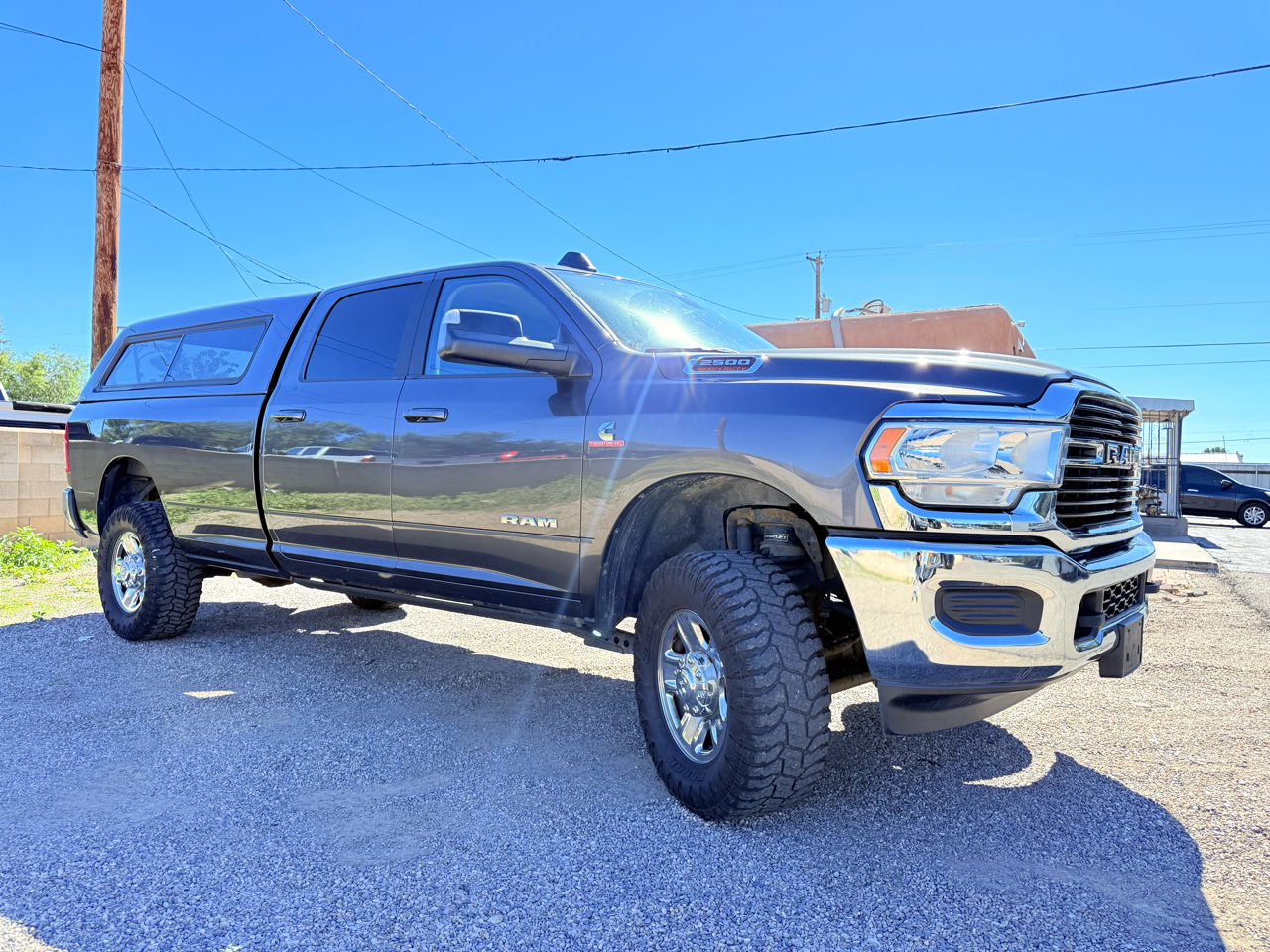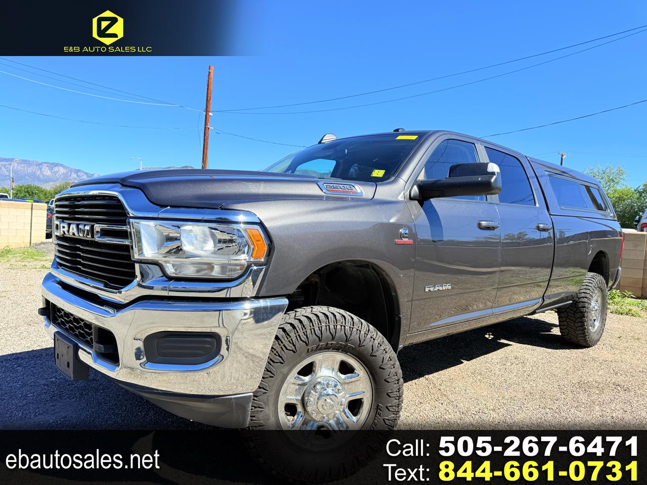 2020 Ram 2500 Big Horn Crew Cab Long Bed 4x4 - 6.7L Cummins Diesel, Lifted with Camper Shell & Factory Wheels The 2020 Ram 2500 Big Horn blends power, refinement, and utility in a heavy-duty package. Powered by the 6.7L Cummins turbo diesel engine producing 370 horsepower and 850 lb-ft of torque, this 4WD Crew Cab Long Bed delivers serious performance with a towing capacity up to 20,000 lbs and a payload rating around 3,400 lbs. This truck features a color-matched camper shell for added versatility and secure storage, along with a professionally installed lift kit and aggressive off-road tires that enhance stance and capability-while keeping the original factory wheels for a clean, OEM look. Inside, the Big Horn trim offers seating for six, upgraded materials, modern infotainment, and plenty of comfort for long drives or jobsite work. Powerful, practical, and well-equipped, this Ram 2500 is ready for whatever comes next. Available now at E&B Auto Sales, 11100 Central Ave SE, Albuquerque, NM 87123. Call 505-267-6471 to learn more or schedule a test drive. Financing available - trade-ins welcome - all credit types considered!We offer financing though many of our local Credit Unions and Finance Companies