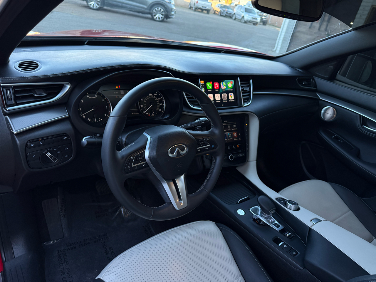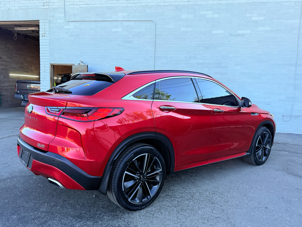 2023 INFINITI QX55 Essential AWD - Highly Optioned, Sunroof, Nearly $60K MSRP New The 2023 INFINITI QX55 Essential delivers bold coupe-SUV styling, premium comfort, and modern technology in a sleek all-wheel-drive package. Powered by a 268-horsepower 2.0L VC-Turbo engine, it offers smooth acceleration, confident handling, and excellent efficiency. This highly optioned Essential model includes a power sunroof, leather seating, advanced ProPILOT Assist, navigation, 360d Around View Monitor, premium infotainment with Apple CarPlay and Android Auto, heated seats, and driver-assist safety features throughout. With a near $60,000 MSRP when new, this QX55 offers standout value while delivering INFINITI's signature blend of luxury and performance. Available now at E&B Auto Sales, 11100 Central Ave SE, Albuquerque, NM 87123. Call 505-267-6471 to learn more or schedule a test drive. Financing available - trade-ins welcome - all credit types considered! Disclaimer: Advertised pricing does not include dealer fees or applicable taxes.We offer financing though many of our local Credit Unions and Finance Companies