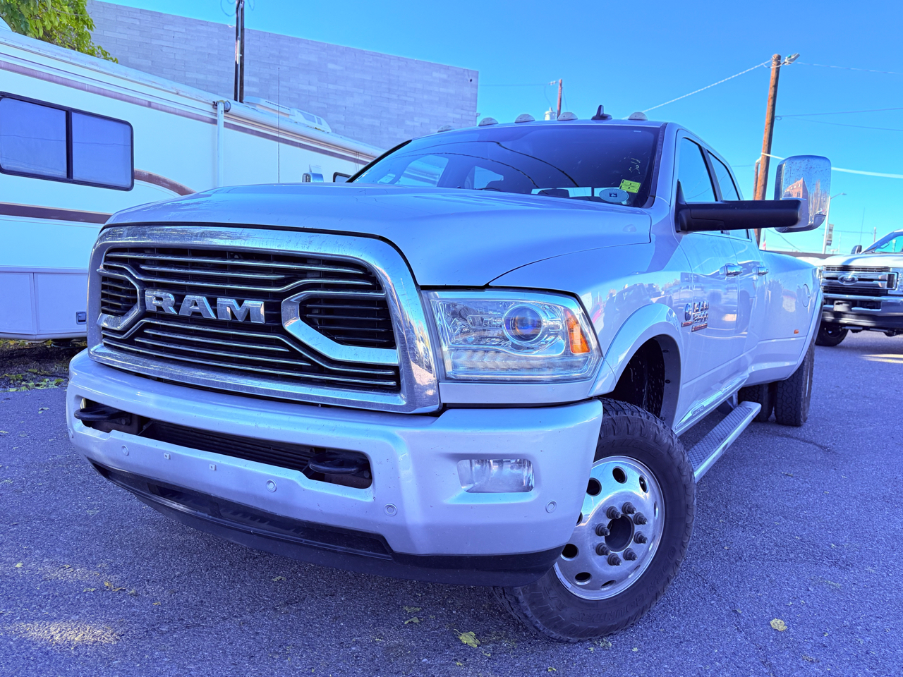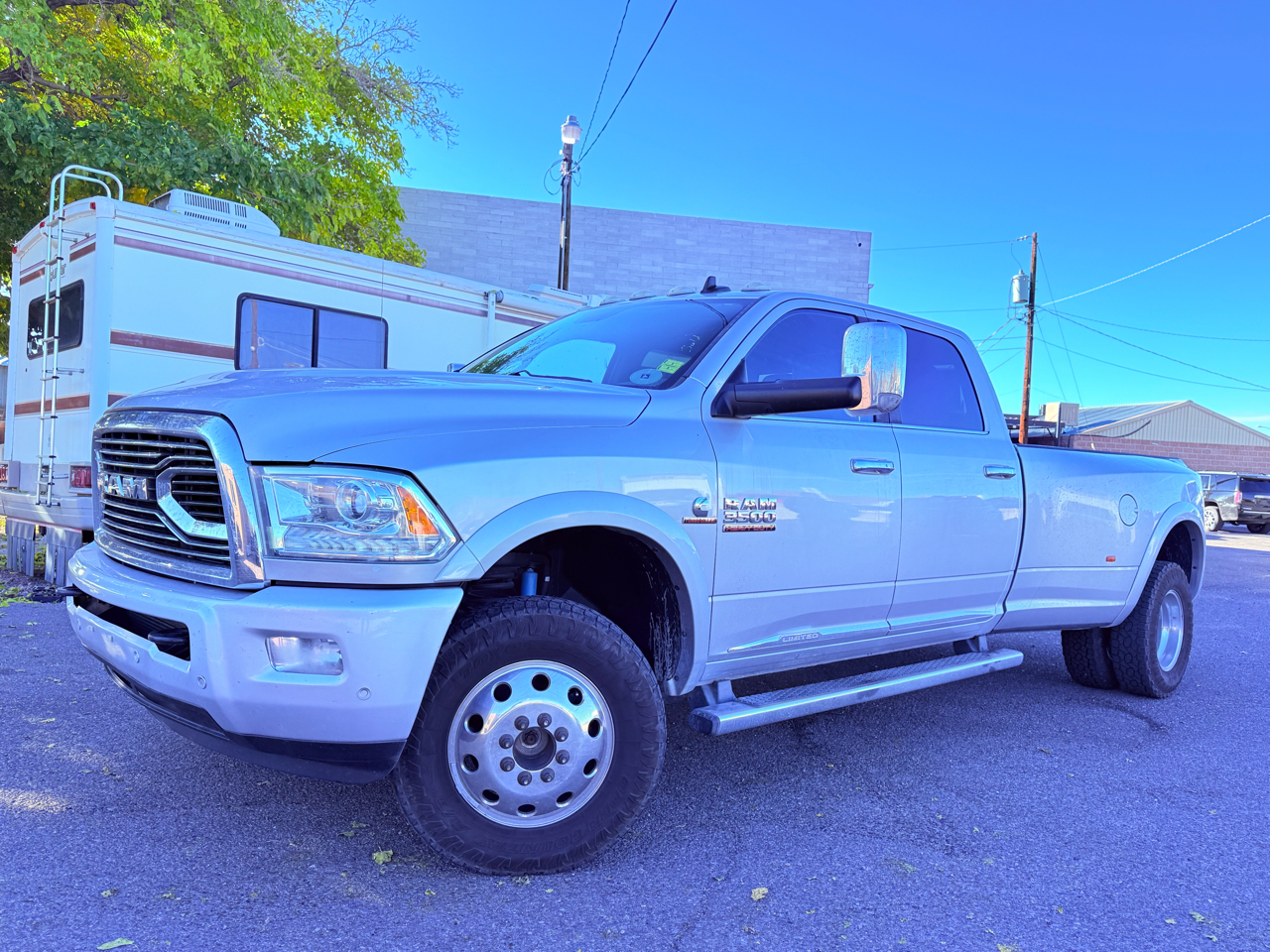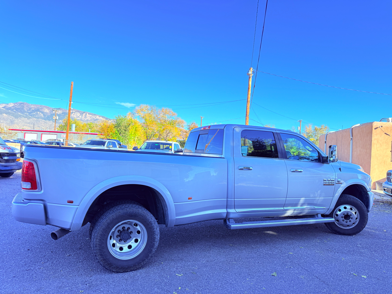 2016 Ram 3500 Laramie Longhorn Crew Cab Long Bed Dually 4x4 - Fully Optioned & Heavy-Duty The 2016 Ram 3500 Laramie Longhorn combines serious towing strength with premium Western-inspired luxury. Powered by the 6.7L Cummins turbo diesel engine producing 385 horsepower and 900 lb-ft of torque, this dual rear wheel 4-wheel-drive Crew Cab Long Bed offers exceptional capability, with a towing capacity up to 31,000 lbs and a payload rating over 6,000 lbs. The Laramie Longhorn trim delivers top-tier refinement, featuring premium leather, woodgrain accents, heated and ventilated seats, navigation, upgraded infotainment, backup camera, and advanced safety features. With its long bed configuration, dually setup, and fully optioned interior, this Ram 3500 stands ready for both heavy-duty work and long-distance comfort. Available now at E&B Auto Sales, 11100 Central Ave SE, Albuquerque, NM 87123. Call 505-267-6471 to learn more or schedule a test drive. Financing available - trade-ins welcome - all credit types considered! Disclaimer: Advertised pricing does not include dealer fees or applicable taxes.