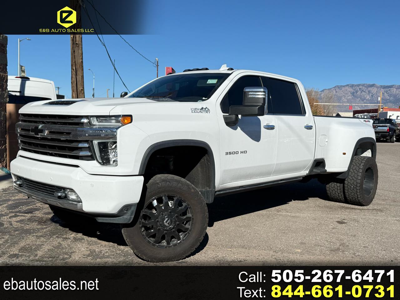 2021 Chevrolet Silverado 3500 High Country Crew Cab Long Bed Dually 4x4 - 6.6L Duramax Diesel, Lifted & Fully Optioned The 2021 Chevrolet Silverado 3500 High Country represents the top of the lineup, combining extreme heavy-duty capability with premium luxury. Powered by the 6.6L Duramax turbo diesel V8, paired with the Allison automatic transmission, this dual rear wheel, 4-wheel-drive Crew Cab long bed is built for serious towing and hauling while maintaining a smooth, confident ride. This fully optioned High Country features premium leather seating, heated and ventilated front seats, navigation, advanced infotainment with Apple CarPlay and Android Auto, premium audio, backup camera, and advanced driver-assist technology. Standing tall with a professionally installed lift kit, custom wheels, and aggressive rough-terrain tires, this Silverado commands attention while remaining work-ready. Powerful, refined, and unmistakably capable, this 3500 High Country is built to perform at the highest level. Available now at E&B Auto Sales, 11100 Central Ave SE, Albuquerque, NM 87123. Call 505-267-6471 to learn more or schedule a test drive. Financing available - trade-ins welcome - all credit types considered! Disclaimer: Advertised pricing does not include dealer fees or applicable taxes.We offer financing though many of our local Credit Unions and Finance Companies