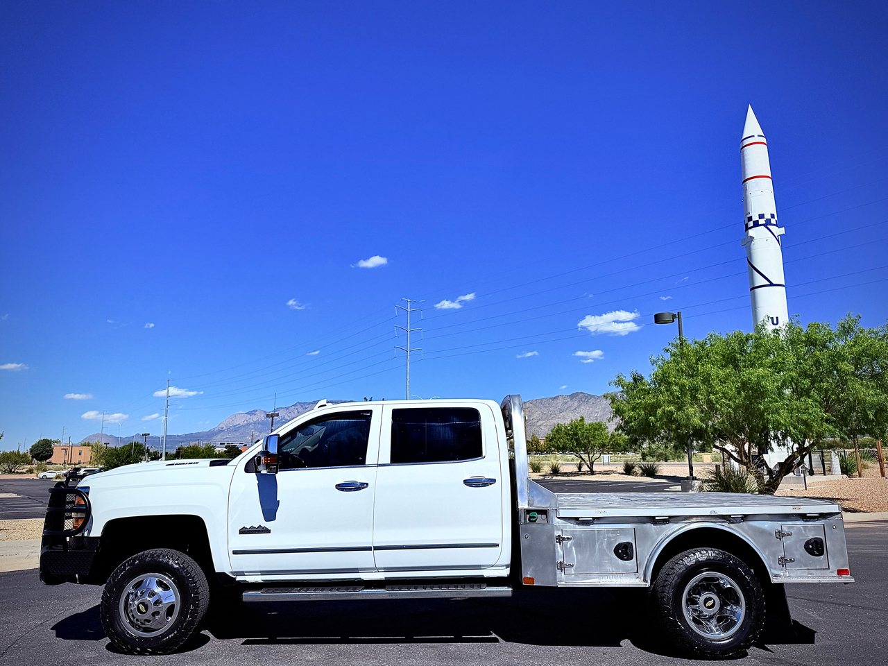 2018 Chevrolet Silverado 3500HD High Country - Fully Optioned Diesel 4x4 Heavy Duty The 2018 Chevrolet Silverado 3500HD High Country Crew Cab Long Bed DRW is the ultimate combination of power, luxury, and heavy-duty capability. Powered by a robust Duramax diesel engine paired with 4x4 performance, this dual rear wheel workhorse is built to take on the toughest jobs. Outfitted with a heavy-duty aluminum flatbed and steel push guard, it's ready for work in any environment. Inside, the High Country trim delivers premium comfort with leather seating, advanced infotainment, navigation, and driver-assist technology-proving this truck is just as refined as it is capable. Fully optioned, super clean, and work-ready, this Silverado stands tall as a top-tier heavy-duty truck. Available now at E&B Auto Sales, 11100 Central Ave SE, Albuquerque, NM 87123. Call 505-267-6471 to learn more or schedule a test drive. Financing available - trade-ins welcome - all credit types considered!