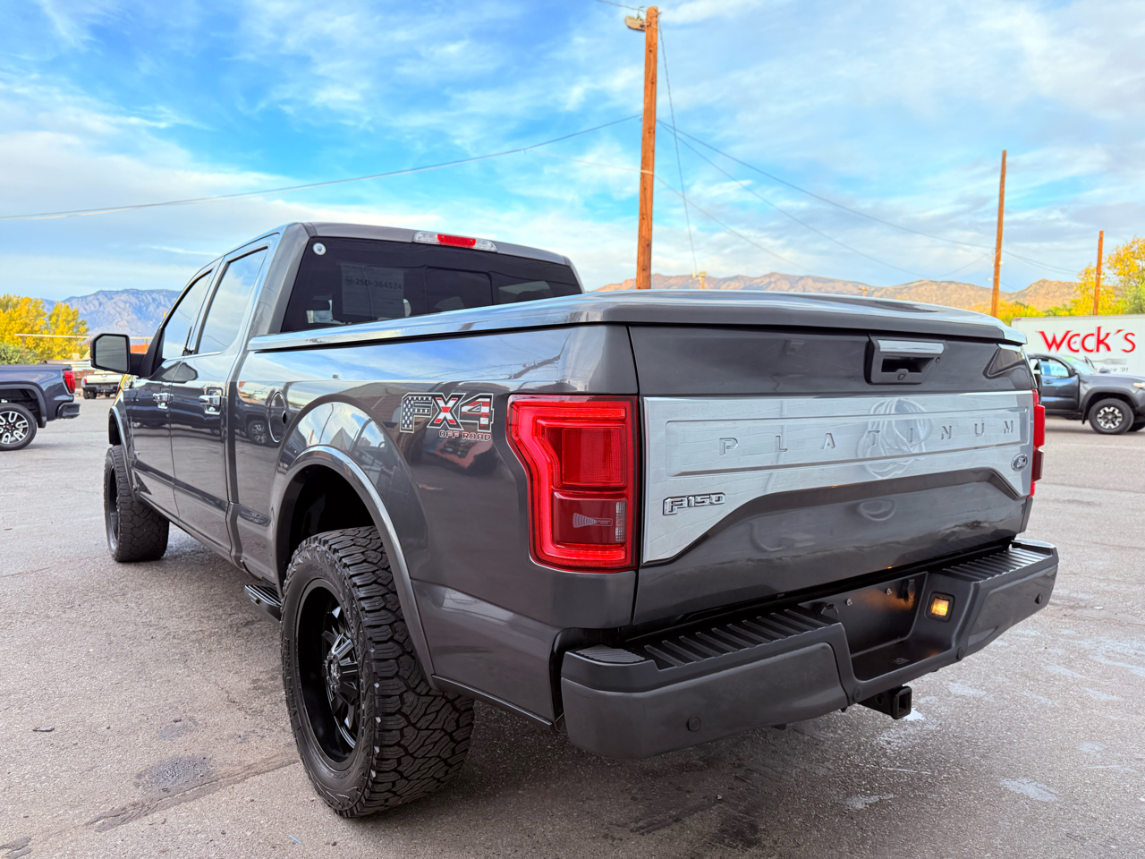 2016 Ford F-150 Platinum - 3.5L EcoBoost V6, Fully Optioned with Custom Wheels The 2016 Ford F-150 Platinum combines luxury, performance, and durability in a modern full-size truck. Powered by the 3.5L EcoBoost twin-turbo V6 producing 365 horsepower and 420 lb-ft of torque, this truck delivers strong towing and hauling capability with refined power delivery and excellent fuel efficiency. With a towing capacity up to 12,200 lbs, the F-150 Platinum is as capable as it is stylish. The Platinum trim comes fully optioned with premium leather seating, panoramic sunroof, navigation, Sony premium audio, advanced driver-assist systems, and polished interior finishes throughout. This example stands out with custom wheels that add a bold, distinctive look to its already premium design. Powerful, comfortable, and loaded with features, this F-150 Platinum is built to impress. Available now at E&B Auto Sales, 11100 Central Ave SE, Albuquerque, NM 87123. Call 505-267-6471 to learn more or schedule a test drive. Financing available - trade-ins welcome - all credit types considered!